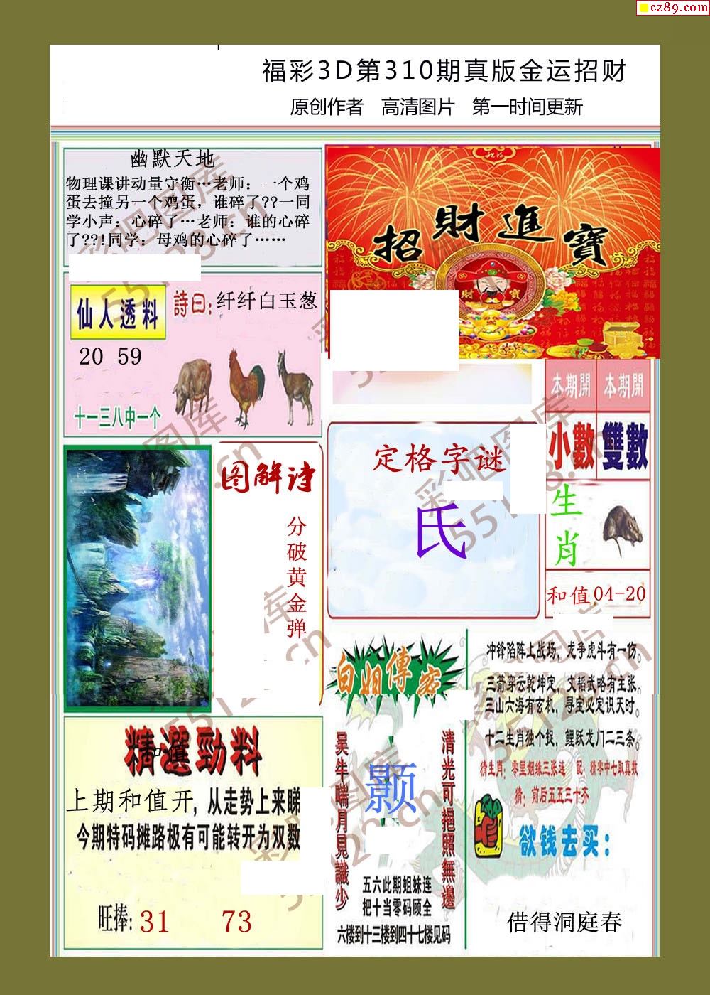 > 25年310期福彩3d金运招财画迷