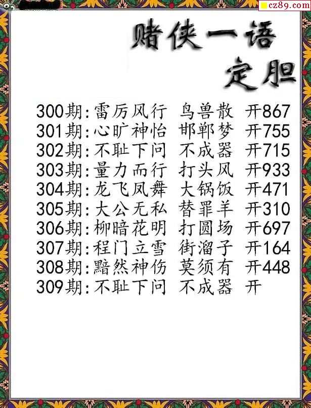 福彩3D2025309期彩赌侠一句定三码字图谜