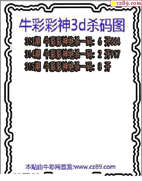 > 牛彩彩神杀码2025315期3d图谜(原创)