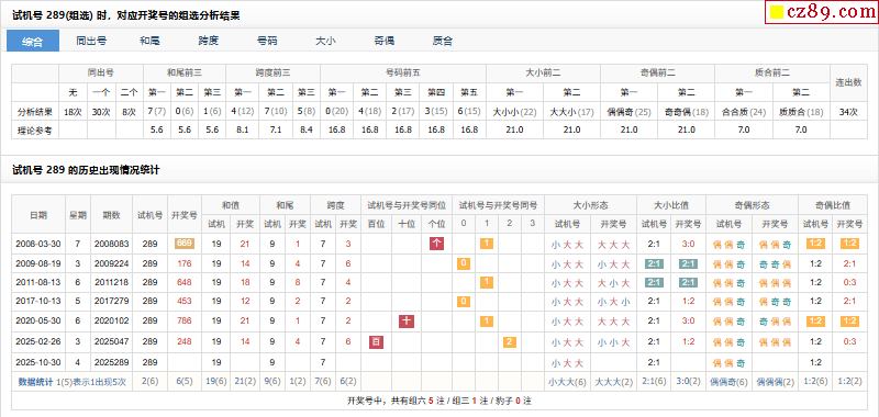 289期福彩3D试机号289对应开奖号的组选分析结果